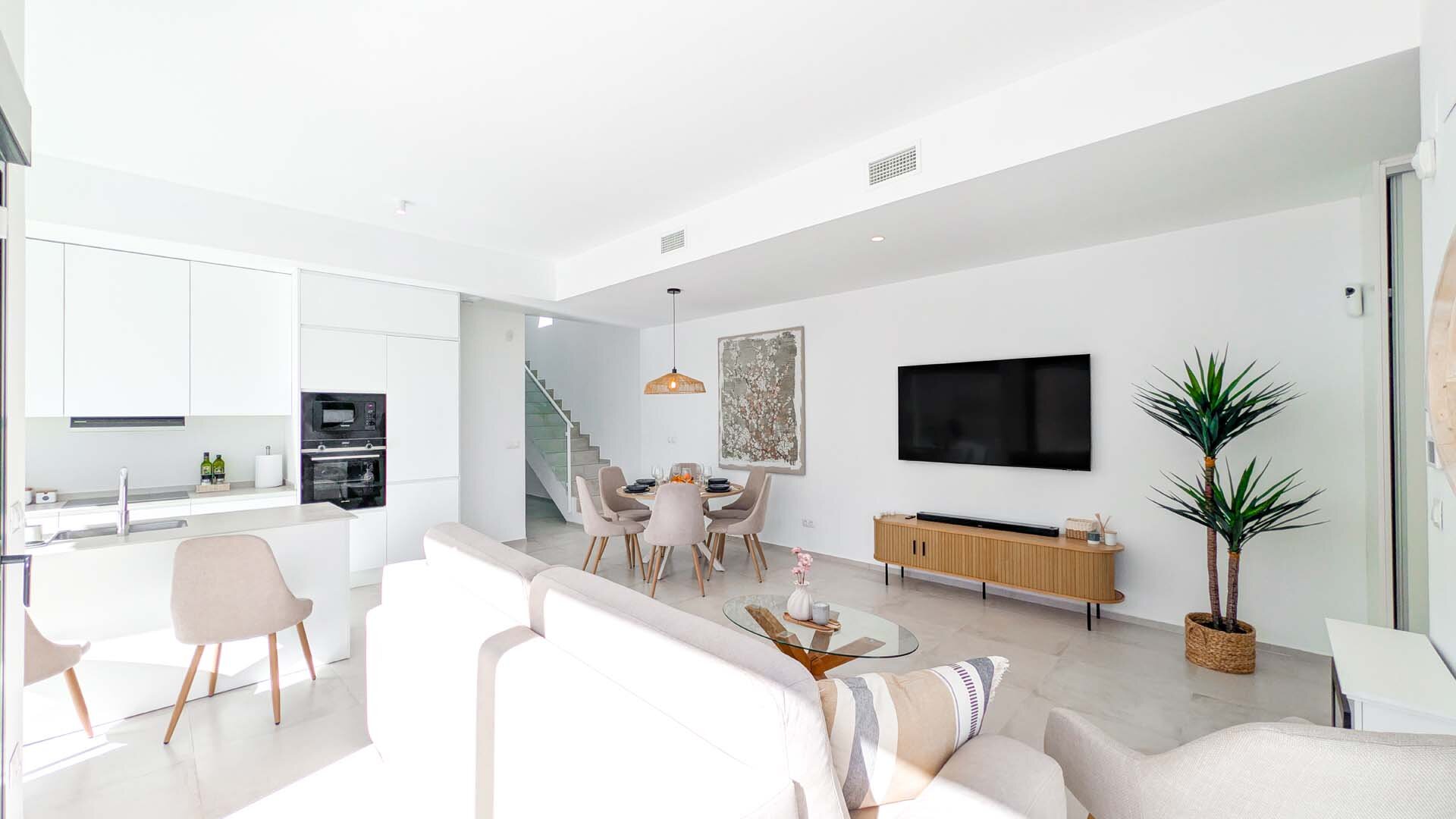 Area: Finestrat is a unique place on the Costa Blanca, where Mediterranean tranquility meets proximity to nature and the sea. The Calle Praga area is modern, peaceful, and well-maintained, located between the majestic Puig Campana mountain and the azure waters of the Mediterranean Sea. Mornings here are greeted with sunshine and calm, while evenings delight with views of the sea and Benidorm’s skyline. A short distance away is Finestrat’s charming old town, with narrow streets, local restaurants, and an authentic regional atmosphere. Close proximity to beaches, hiking and mountain trails, golf courses, and water sports ensures there is something for everyone – both for active vacationers and those seeking relaxation. The area is also perfect for families with children. Nearby are popular amusement and water parks such as Terra Mítica, Aqualandia, Mundomar, and Terra Natura, offering entertainment for kids of all ages. Wide sandy beaches with gentle sea access and numerous playgrounds and recreational areas further promote family-friendly holidays. It is an ideal place to slow down, enjoy the sun, and experience the true Costa Blanca lifestyle.